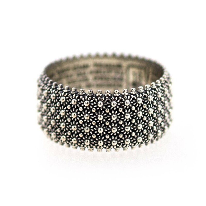 Anello in filigrana d’argento con preghiera in sardo S’Ave Maria.Misure disponibili: 14