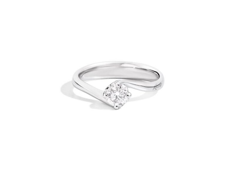 Anello solitario in oro bianco 18 Kt taglia 14 diamante taglio brillante ct.0.31 F/SI.