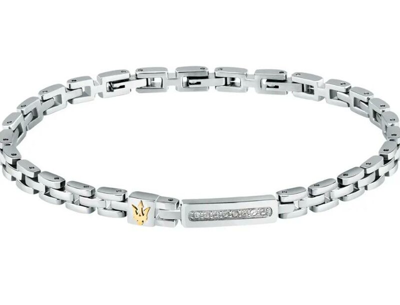 Genere: Uomo, Misura: 18|3.5, Colore: Silver, Dorato, Materiale: Acciaio, Peso: 18,200 gr, Pietra: Cristallo, Colore pietra: Bianco, Certificato di autenticità: Sì.