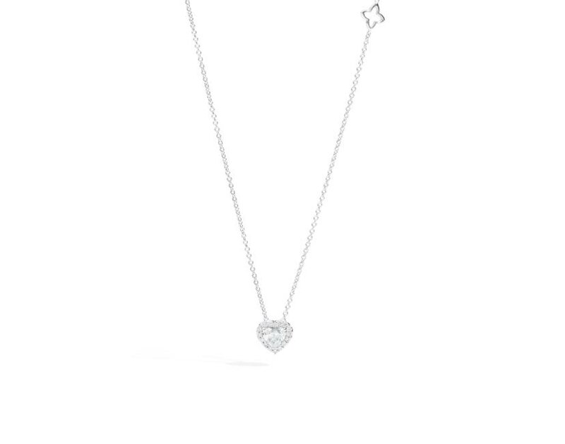 Collier punto luce Halo Heart oro bianco 18 kt e diamanti naturali taglio brillante forma cuore e forma rotonda ct. 0.28 F/VVS.