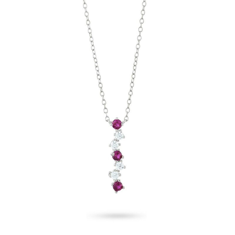 Collana in argento con pendente composto da zirconi a baghette di colore bianco e rubino.