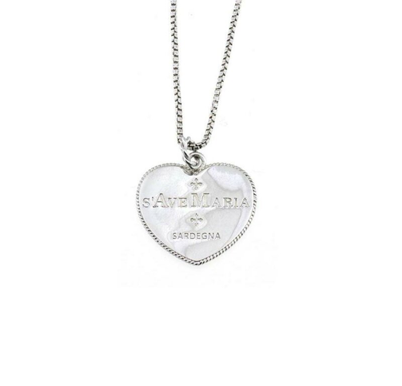 La Collana Coru Miu S’ave Maria è realizzata in argento 925, e ha incisa la preghiera “S’ave Maria” in lingua sarda.