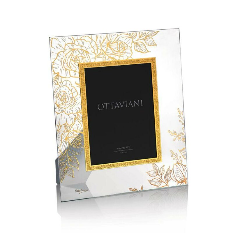 PORTAFOTO CRISTALLO "ROSE" CON FOGLIA ORO