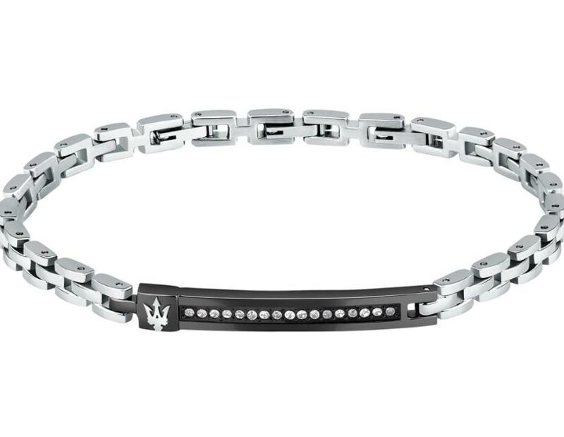 Genere: Uomo, Misura: 18|3.5, Colore: Silver, Nero, Materiale: Acciaio, Cristalli, Peso: 18,800 gr, Pietra: Cristallo, Colore pietra: Bianco, Certificato di autenticità: Sì.