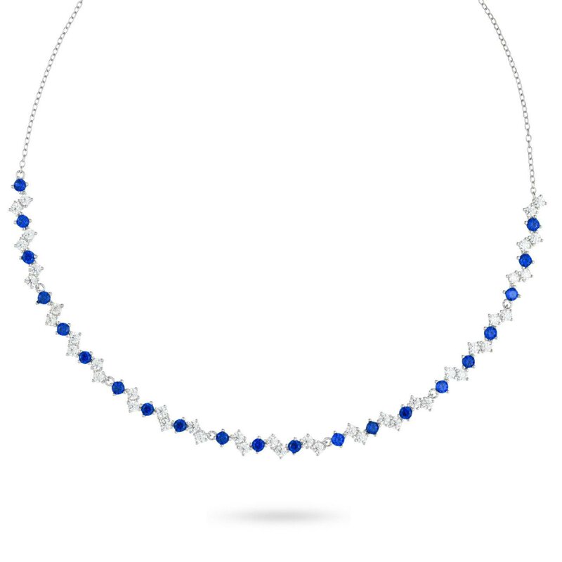 Collana in argento, modello girocollo, con zirconi a baghette di colore bianco e zaffiro.