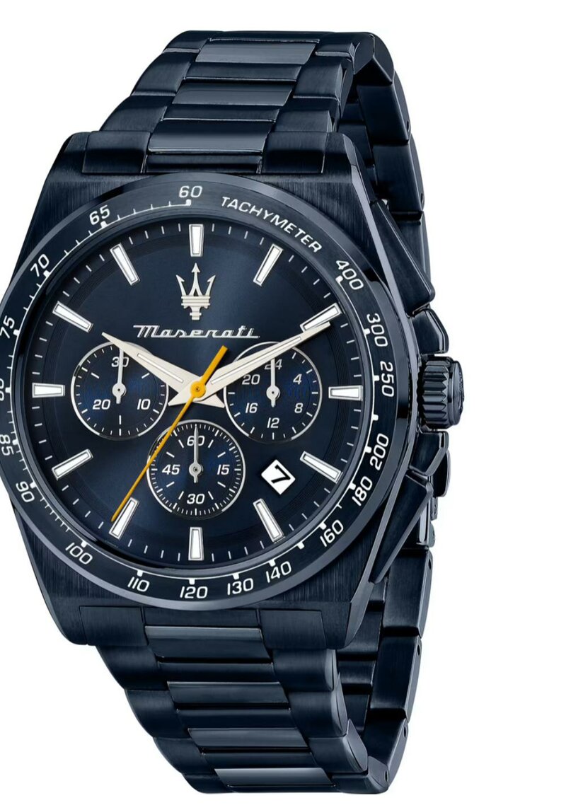 L'orologio Maserati Blue Edition cattura l'essenza della mascolinità moderna. Un cronografo dal design sofisticato, con cassa e cinturino in acciaio blu. Un tocco di eleganza distintiva per l'uomo che non rinuncia allo stile Maserati.